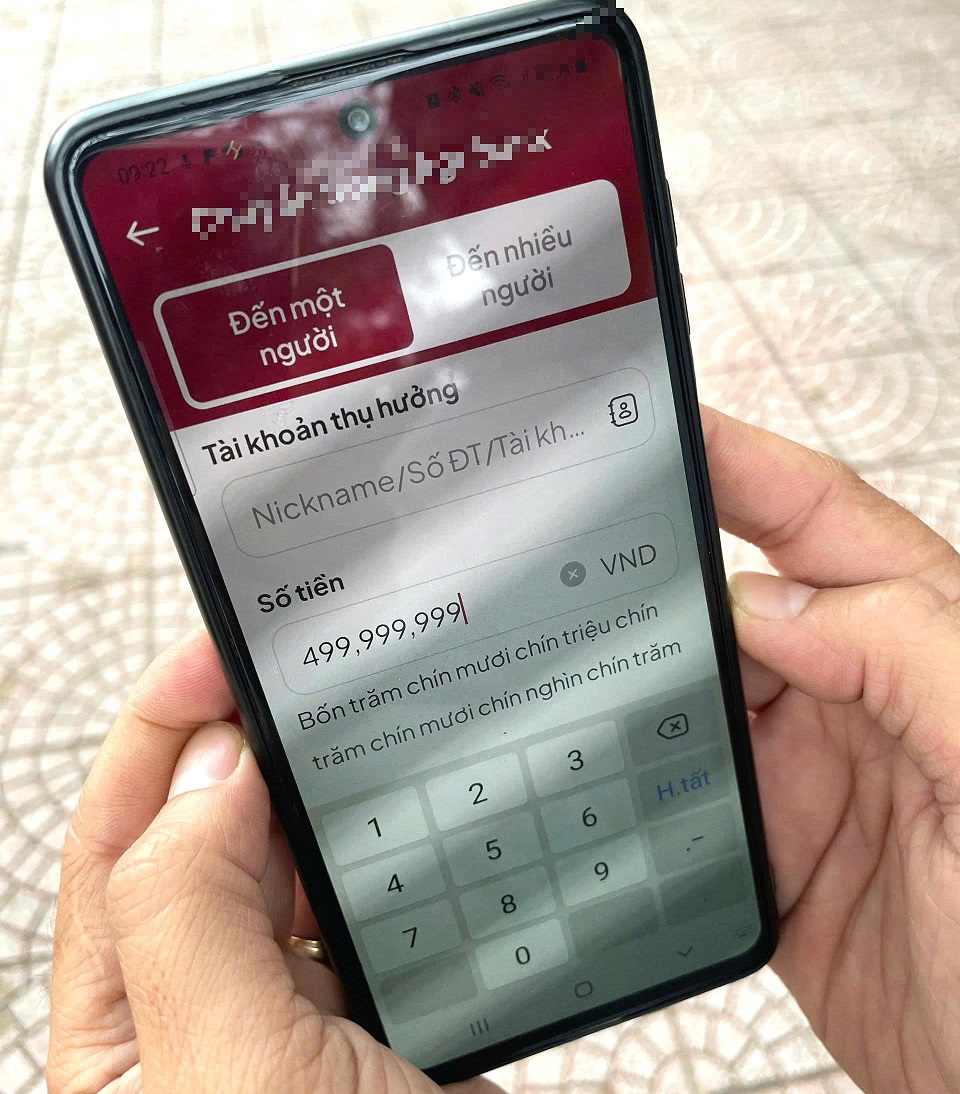 Ngày 10/11, chị Nguyễn Thị Thu Th. (trú xã Lao Bảo, tỉnh Quảng Trị) thực hiện giao dịch qua điện thoại thì do lỗi mạng đã chuyển nhầm 499.999.999 đồng vào tài khoản mang tên NGUYEN THE LU.