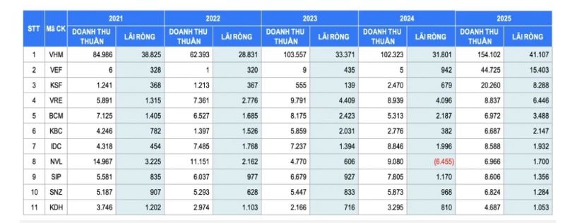 Năm 2025 ghi nhận sự phục hồi rõ nét của nhóm doanh nghiệp bất động sản niêm yết khi doanh thu và lợi nhuận toàn ngành tăng mạnh, số doanh nghiệp báo lãi nghìn tỷ lên mức cao nhất trong 5 năm.