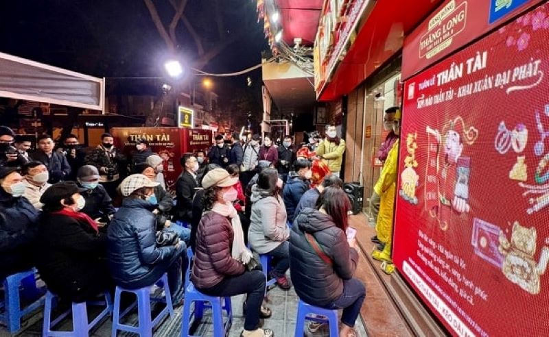 Người dân xếp hàng mua vàng cầu may nhân ngày Vía Thần Tài – mùng 10 tháng Giêng.