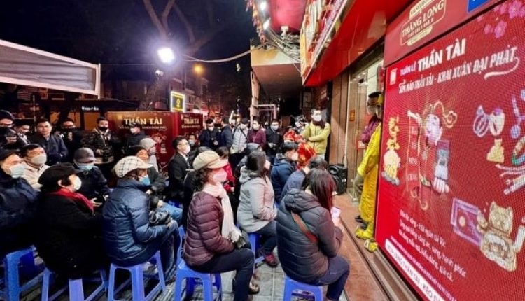 Người dân xếp hàng mua vàng cầu may nhân ngày Vía Thần Tài – mùng 10 tháng Giêng.