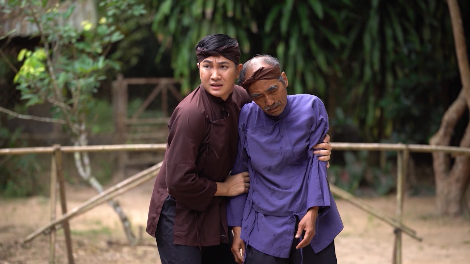 Một ngày nọ, khi 2 mẹ con đang ngồi ăn cơm thì có 1 ông lão ghé xin nước. Hiếu vui vẻ đem nước cho ông, nhưng khi ông lão vừa bước đi thì ngất xỉu vì có vẻ như ông đã đói rất nhiều ngày. Hiếu đem ông vào nhà, anh nhường phần cơm của mình cho ông lão ăn và nói dối là mình đã ăn rồi.